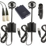 Trzy mikrofony pojemnościowe przeznaczone do akordeonu z systemem bezprzewodowym UHF.